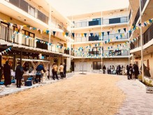 マンションの一階部分に暖簾(のれん)が下がる