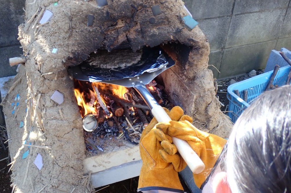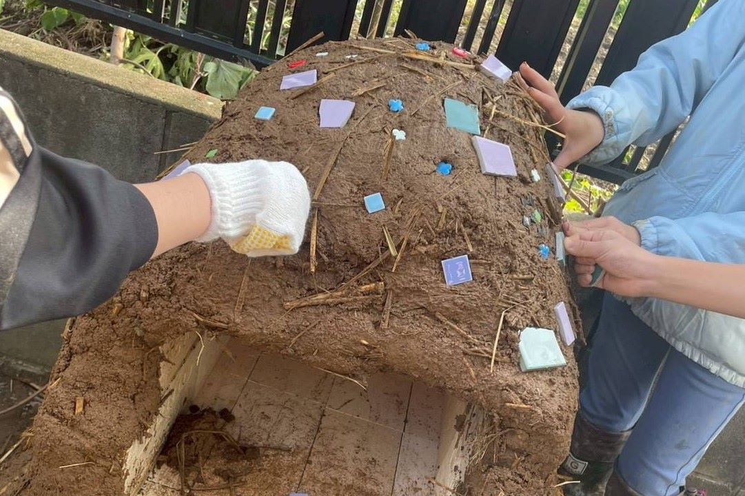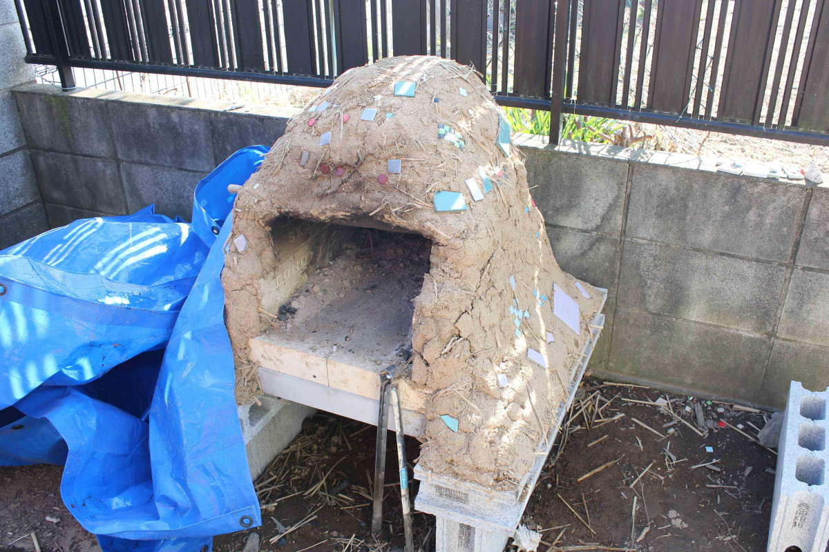 子どもたちが材料の赤玉土を購入し、作ったピザ窯