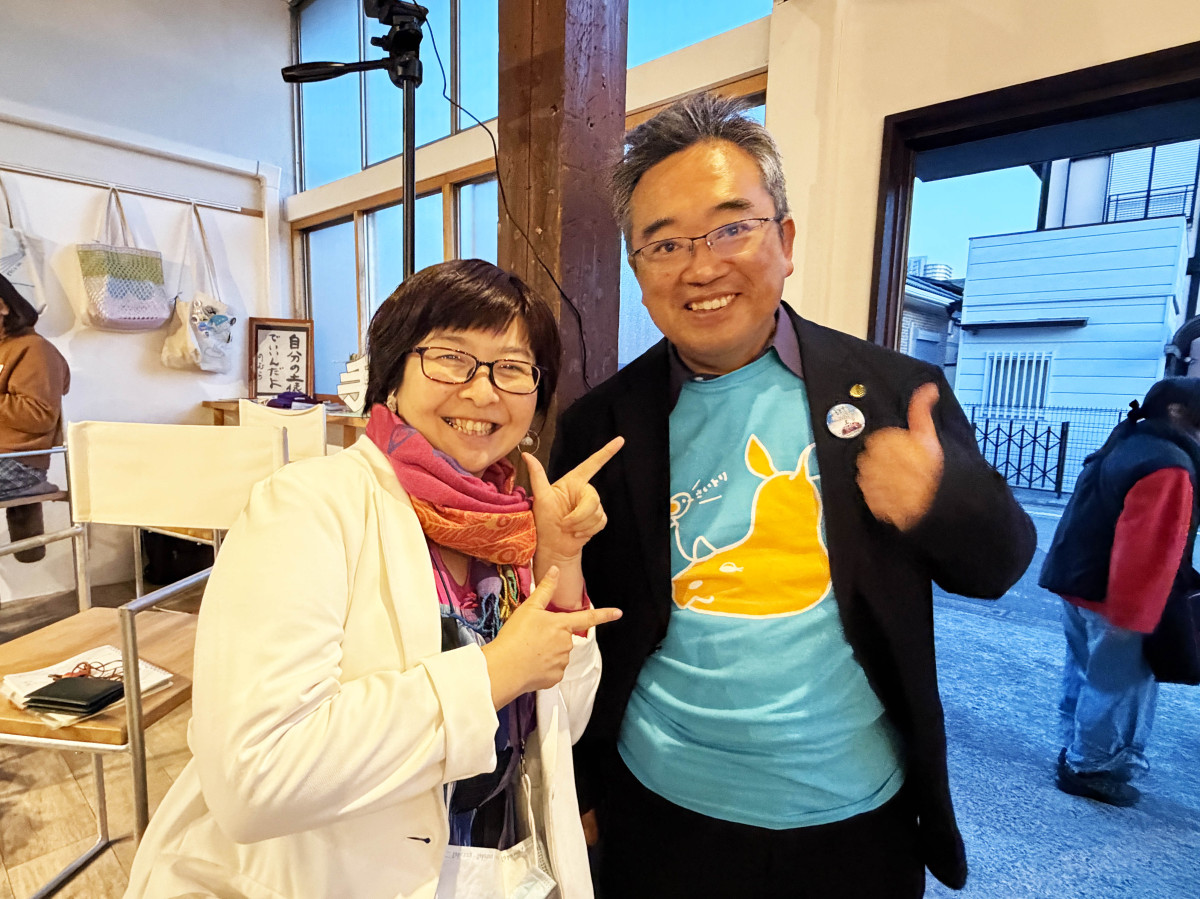 香川県から駆け付けた「アート芸術祭研究家」の後藤努さん(右)と「アート洗い」の鈴木知佐子さん