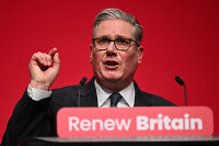 自民党総裁選の討論会に臨む(左から)小林鷹之元経済安全保障担当相、茂木敏充前幹事長、林芳正官房長官、高市早苗前経済安保相、小泉進次郎農林水産相=30日午後、東京・永田町 【時事通信社】