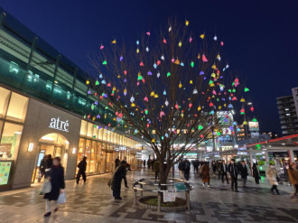 アートプロジェクト「ひかりの実」イルミネーションが現在、浦和駅東口の樹木に展示されている。