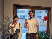 松田桃子副店長(左)、村岡結仁店長と長女の祈ちゃん(右)