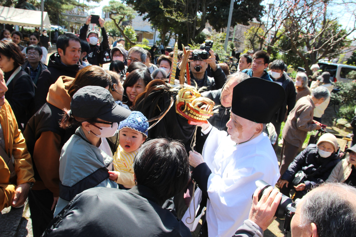 春の温かさを感じさせる日和となった3月15日、田島氷川神社(さいたま市桜区田島4)で春の大祭が執り行われ、約400年の歴史を持つ「田島の獅子舞」が奉納された。