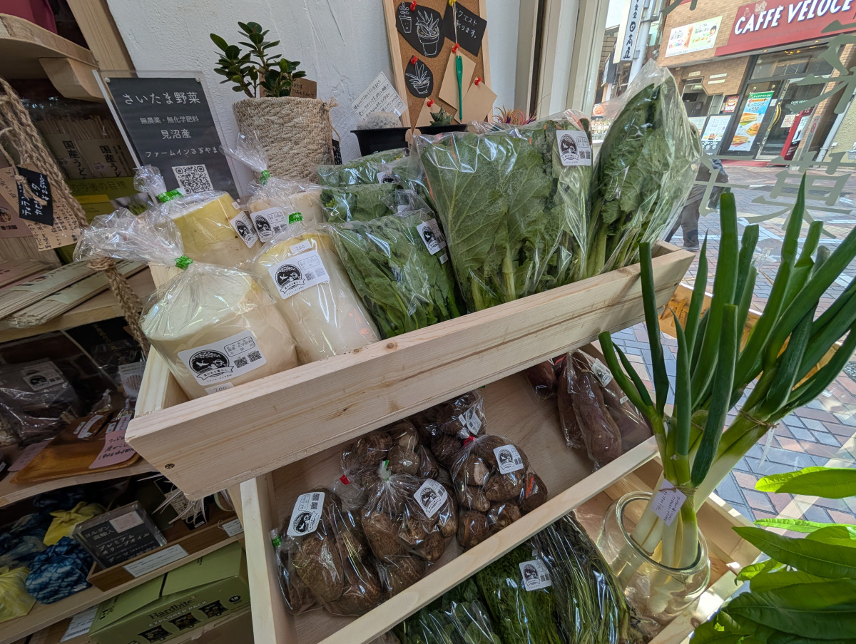 地元さいたま産の農産物も並ぶ