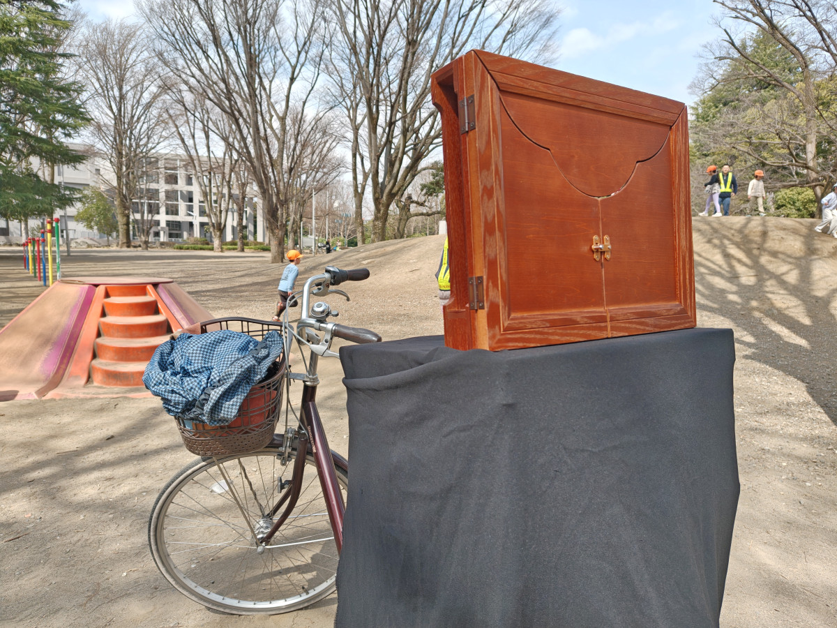 北浦和公園で自転車紙芝居 砂場の縁石も客席に、市民グループ上演20年超