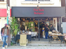 「軒先マルシェ」が3月28日・29日、浦和裏門通りのアンティークショップ「Free Style Antiques(フリースタイルアンティークス)」と手焼き煎餅店「三代目満作煎餅」(以上、さいたま市浦和区仲町2)で開催された。