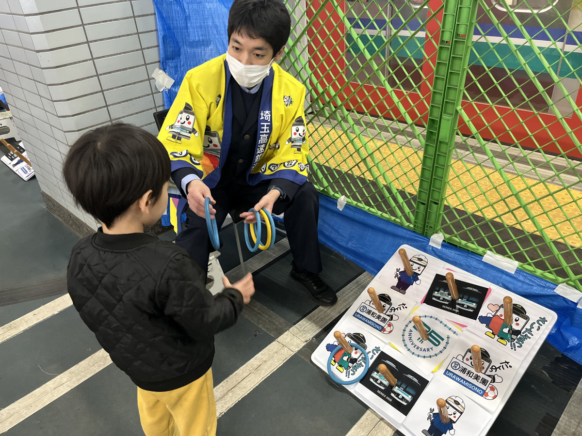 浦和美園駅3番線ホーム内で縁日。輪投げの様子