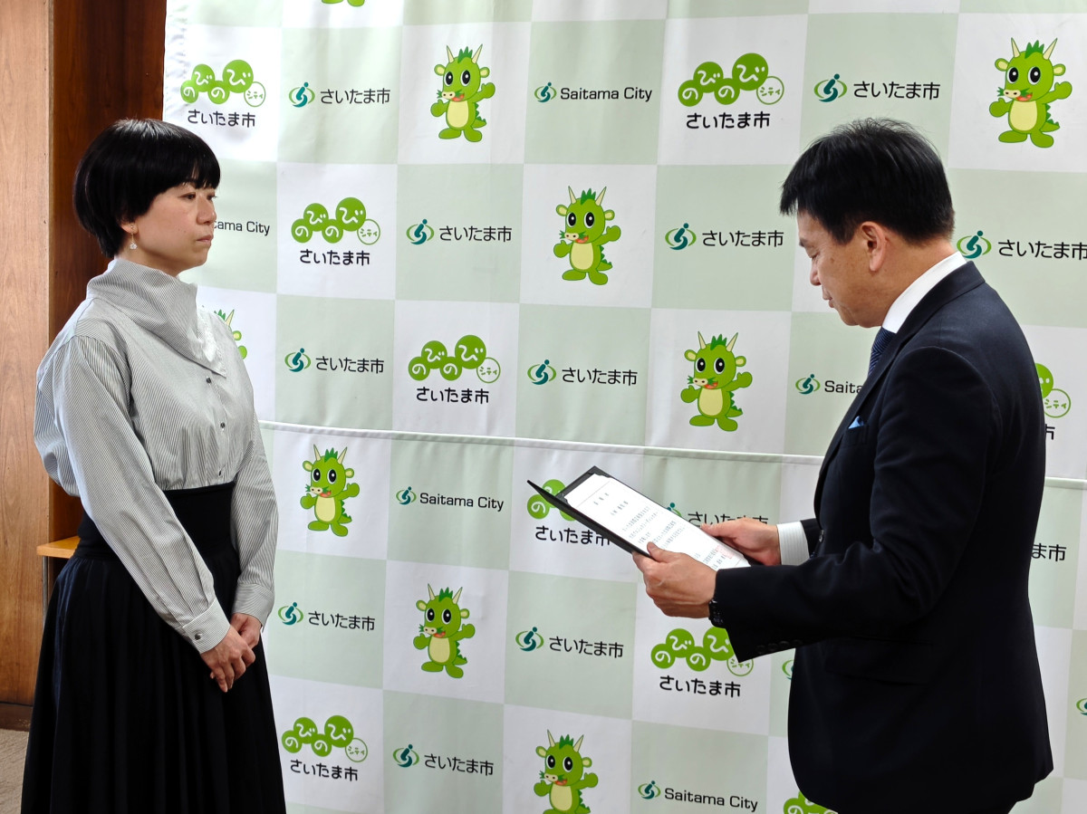 さいたま市で原則3年に1度開催される芸術の祭典「さいたま国際芸術祭2027」のディレクター委嘱状交付式が4月16日、さいたま市役所の市長室で行われ、オランダ在住のダンサー・振付師の湯浅永麻さんと、さいたま市で画廊を開くギャラリスト・小林優佳さんが就任した。