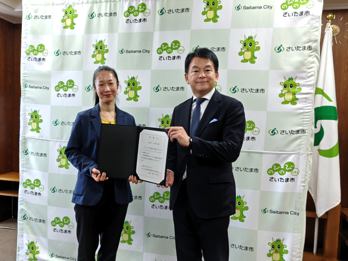 さいたま市で原則3年に1度開催される芸術の祭典「さいたま国際芸術祭2027」のディレクター委嘱状交付式が4月16日、さいたま市役所の市長室で行われ、オランダ在住のダンサー・振付師の湯浅永麻さんと、さいたま市で画廊を開くギャラリスト・小林優佳さんが就任した。