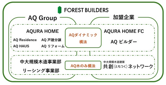 弊社は2024年に、日本最大級の木造建築集団を目指す「フォレストビルダーズ」を結成しました。「フォレストビルダーズ」には、弊社オリジナル技術「AQダイナミック構法」で戸建て住宅を建築する外部組織「アキュラホームFC」とボランタリーチェーンの「AQビルダー」があります。一方、「AQ木のみ構法」で中大規模木造建築を担う外部組織が、池田建設も所属する「ともつくネット」です。ともつくネットでは加盟企業に対し、「AQ木のみ構法」を軸とした“技術”、加盟企業同士が高め合う“場”、技術だけでなく経営を学ぶ“機会”の3つの価値を提供。技術研修、補助金申請のサポートなども含め、実務面から経営支援まで幅広くバックアップを実施することで、加盟企業が安心して中大規模木造建築を手掛けられる環境を整えています。