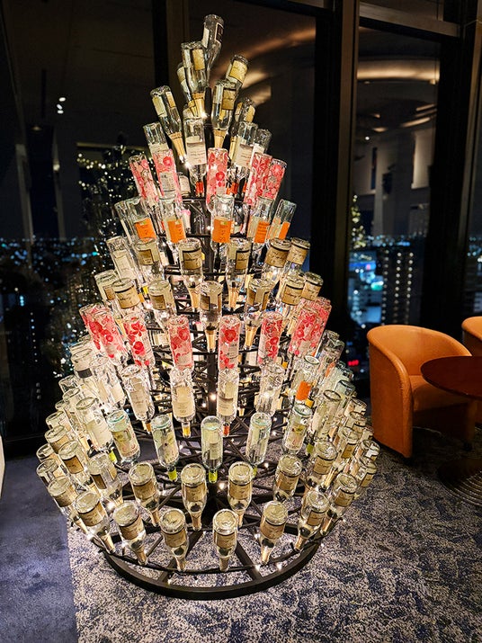 トップラウンジ(19F)にはワインボトルを使ったクリスマスツリーが登場