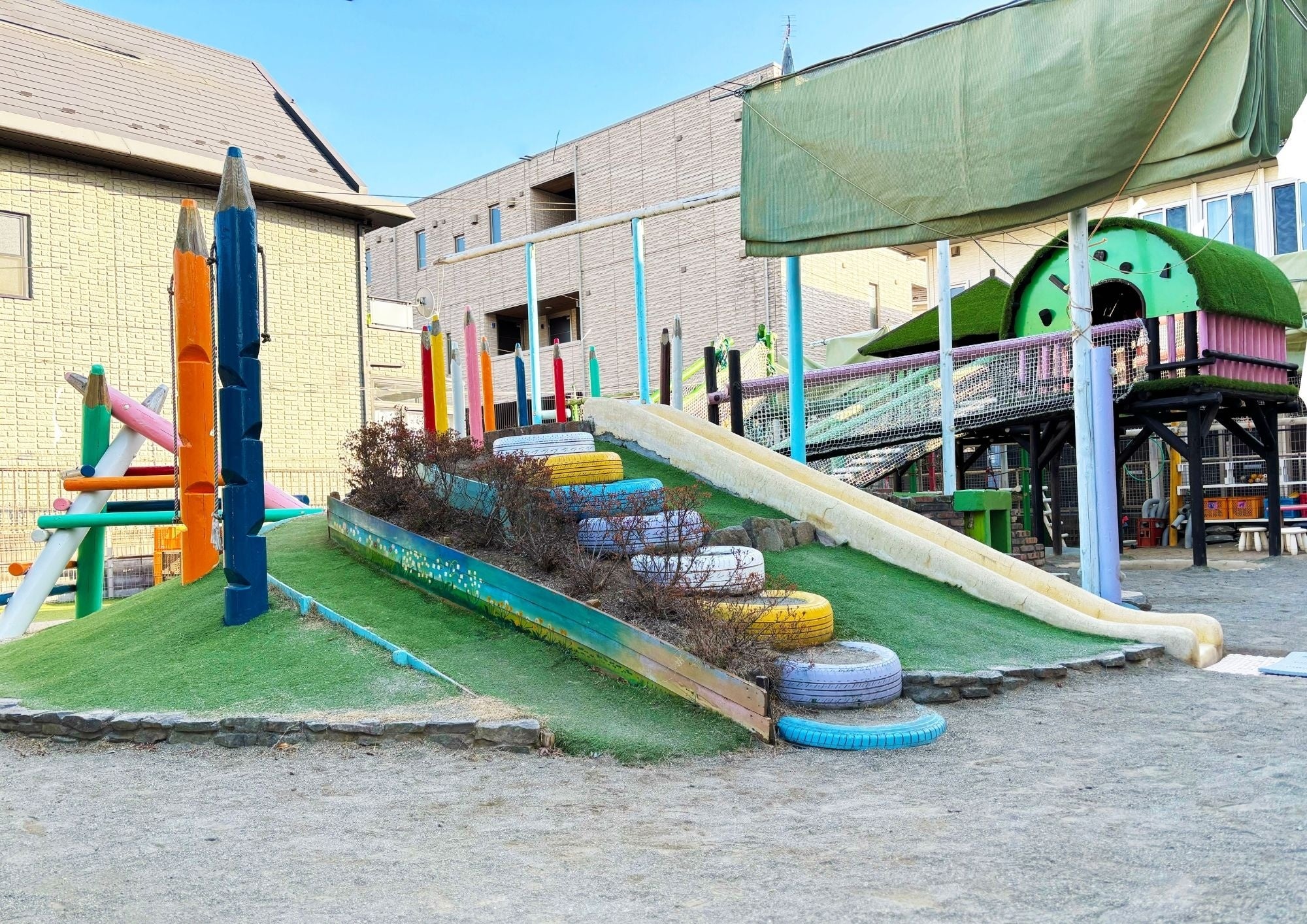 建築家・金井良一氏と協業し、あえて完成させない園庭を設計。子ども自身が遊びを発見し、考える力を育む環境を整えています。