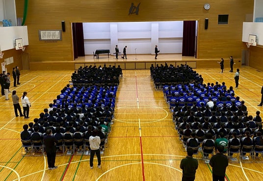 全校生徒が見守る中行われた寄贈式典