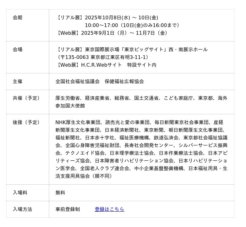 H.C.R2025 第52回国際福祉機器展&フォーラム 開催概要
