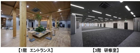 1階内装床には、準耐火構造を実現するための設計手法である燃えしろ設計の構造体に加えて、国産木材を使用したフローリング、天然木パネルの天井によって内装の木質化を図りました。3階研修室は、大断面集成梁120mm×690mm×12,000mmをプレカットし、384平方メートル の無柱空間を実現しています。