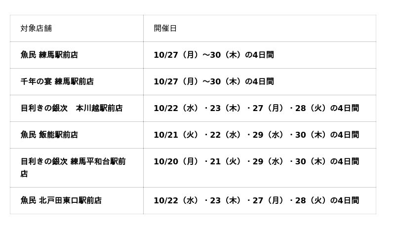 魚民 練馬駅前店セール日 :10/27(月)~10/30(木)