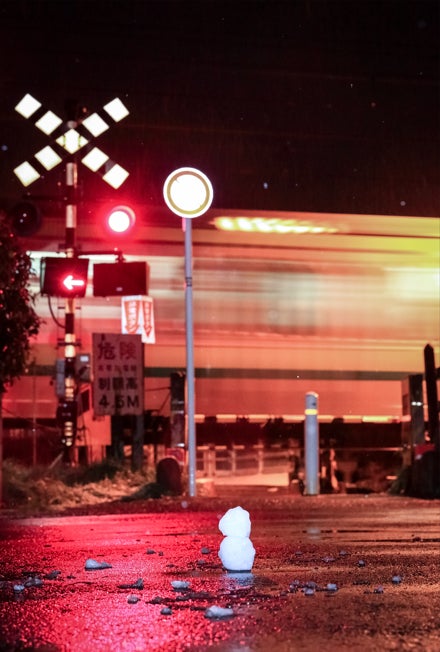 雪が降った後の踏切の情景をとても綺麗に、しかも見る人の心の中で物語をふくらませるような見せ方で表現されていて素晴らしいと思いました。信号機の赤い光が路面に反映して作り出すグラデーションが、主人公の雪だるまがポツンと立つ空間を幻想的に演出しています。その姿が寂しげで可愛く、通過する夜汽車を見つめているようにも思えてきます。もともとあった雪だるまなのか、ご自身で作ったものかわかりませんが、こんな小さな存在を見逃さないで自分だけの作品に仕上げた作者の視点とアイデアに敬意を表します。