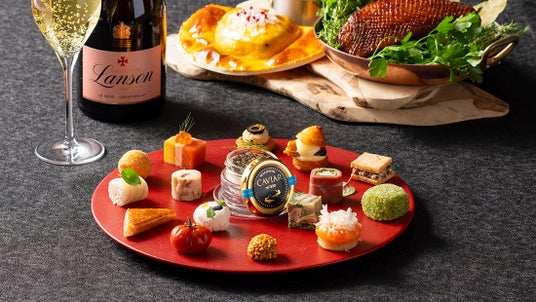 黒毛和牛や京鴨をメインにキャビア、トリュフなど厳選食材を堪能できる全25品のクリスマス限定コース。英国王室御用達のシャンパーニュ・ランソンとともにお楽しみください。