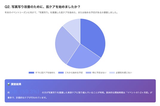 その結果、約7割の方が年末に増える「写真に映る機会」を意識しており、約6割が写真写りを意識した肌ケアを実施・計画していることが分かりました。