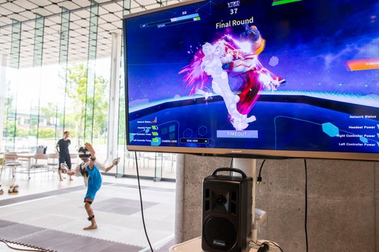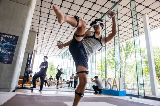 「VRテコンドー」は、ヘッドセットとモーションセンサーを用い、プレイヤーの全身動作を高精度でトラッキングして仮想空間に反映するeスポーツです。