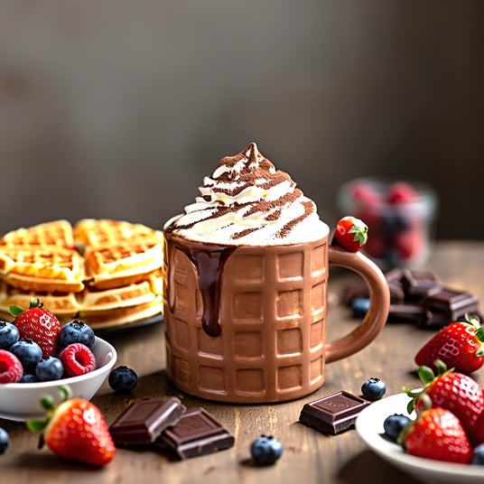 ワッフルと一緒に、このマグで甘いドリンクを味わうのはいかが?