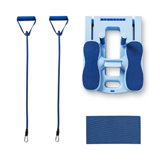 ジムに行かなくても、おうちでストレッチからコア&ヒップトレーニングなど、様々なエクササイズが簡単にできます。エクササイズバンドに、膝を守るパット付き
