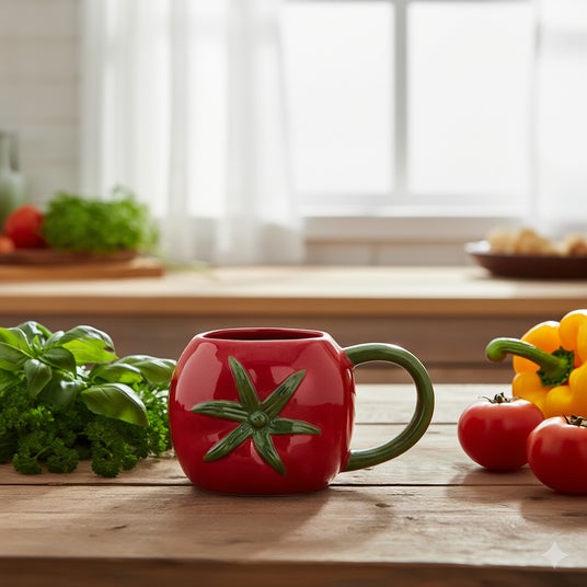 朝の目覚めの一杯は、トマトのマグでトマトジュースを。スープを入れても◎