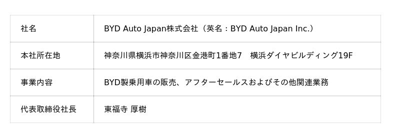 リリース発行企業:BYD JAPAN 株式会社