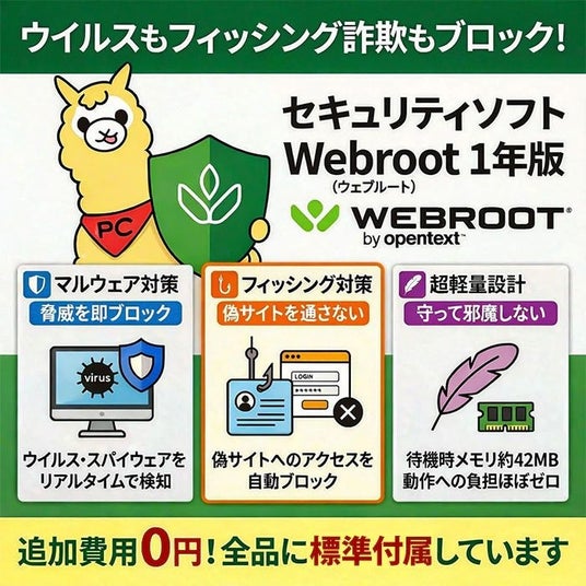 中古パソコン販売「アルパカPC」を運営する株式会社もっと(本社:埼玉県羽生市、代表取締役:桑澤優羽歩)は、2026年3月より、販売するすべてのパソコンに対し、フィッシング対策に特化したセキュリティソフト「Webroot」および独自開発ツールを標準装備するサービスを開始いたします。