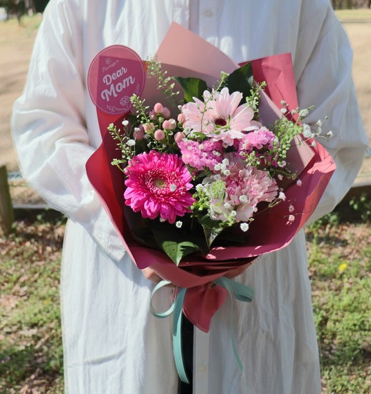 カーネーションを中心に親しみやすい花々を華やかに束ねました。感謝の気持ちをまっすぐ手渡したい方におすすめです。