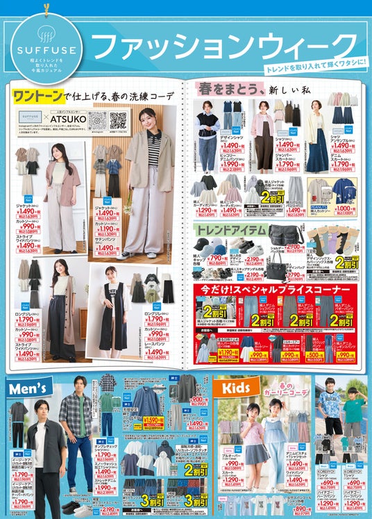【SUFFUSEファッションウィーク】では、パシオスのオリジナルスタイル(PB)[SUFFUSE(サフューズ)]のアイテムを集めた特集を開催いたします。