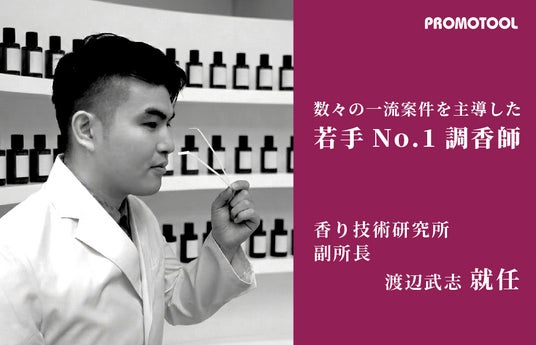 あらゆる香りを科学し、デザインするセントテクノロジーカンパニーのプロモツール株式会社(本社:東京都文京区、香り技術研究所:埼玉県さいたま市、代表取締役兼CEO:緒方健介、以下:当社)は、調香・分析・商品開発を統合した中核拠点「香り技術研究所」において、シニア調香師の渡辺武志が副所長に就任したことをお知らせいたします。