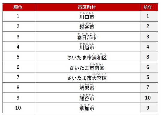 2位には「越谷市」、3位には「川越市」がランクインしました。