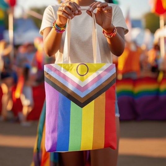 プライドフラッグのデザインがプリントされた、印象的なデザイン。自分のスタイルを大切にしたいすべての人に寄り添うバッグです。