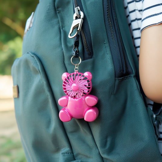 ピンクのクマのキーリング×手持ち・卓上の2WAYファン。バッグに付けて持ち運べる、ファッション性と実用性を兼ね備えたアイテムです。USBケーブル付き