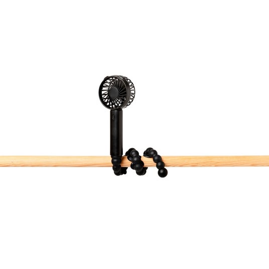 タコのような柔軟な脚と吸盤付きなので、日傘に巻き付けたりテーブルに固定したりと、さまざまなシーンで使用可能。設置場所を選ばず使えるファンです。USBケーブル付き